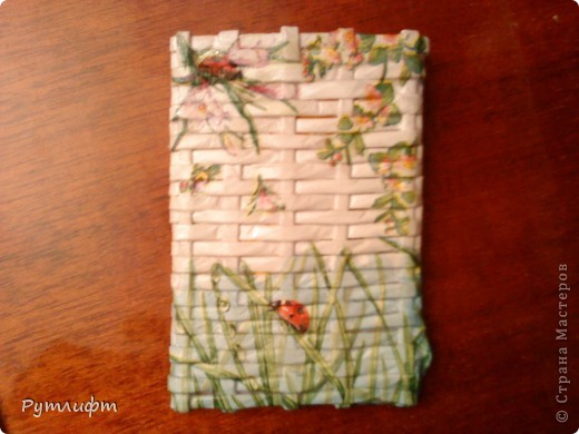 Тип работы Событие Техника Материал Поделка, изделие Декупаж, Плетение: Корзинка в подарок, и футляр для моих водительских прав. Бумага, Бумага газетная